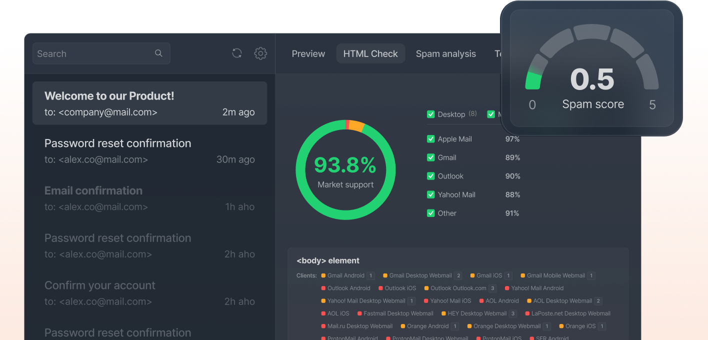 Complex and user-friendly dashboards with key deliverability metrics for every mailbox provider.