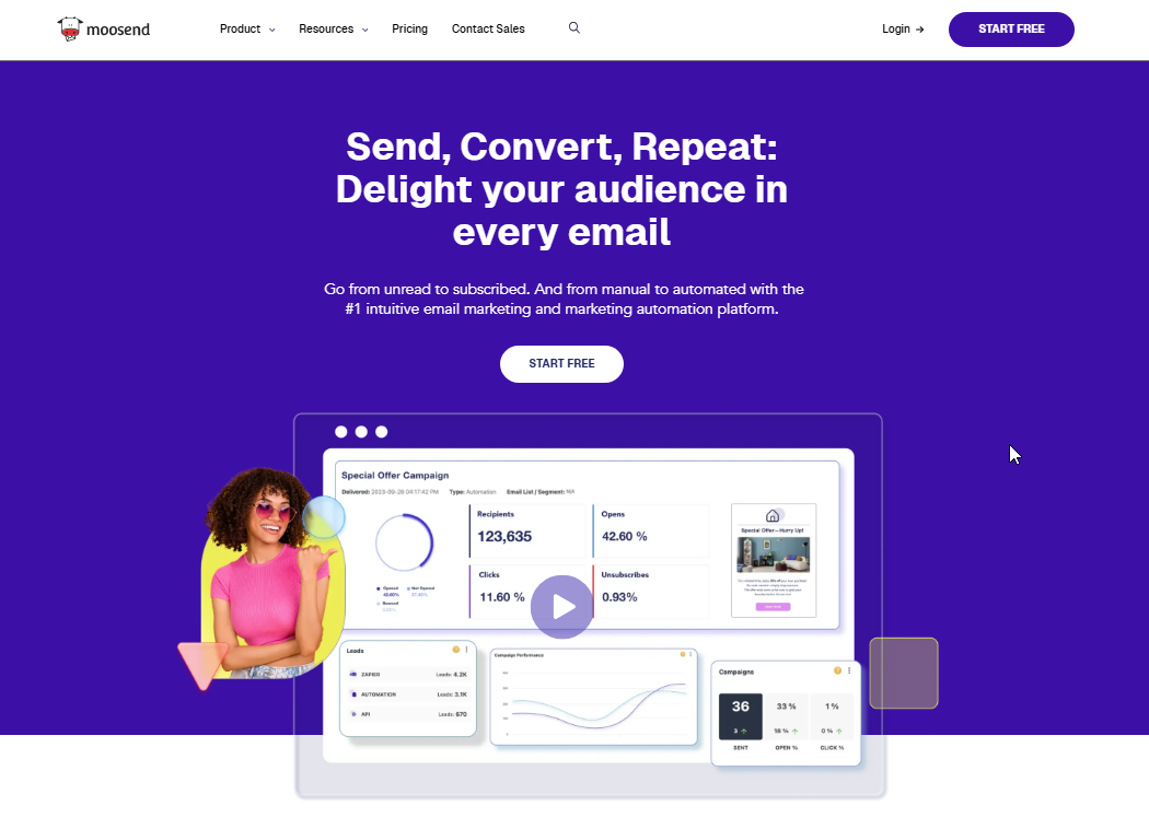 Moosend | Free 30-day trial | Starts at $9/month for up to 500 unique subscribers and unlimited email sends. |