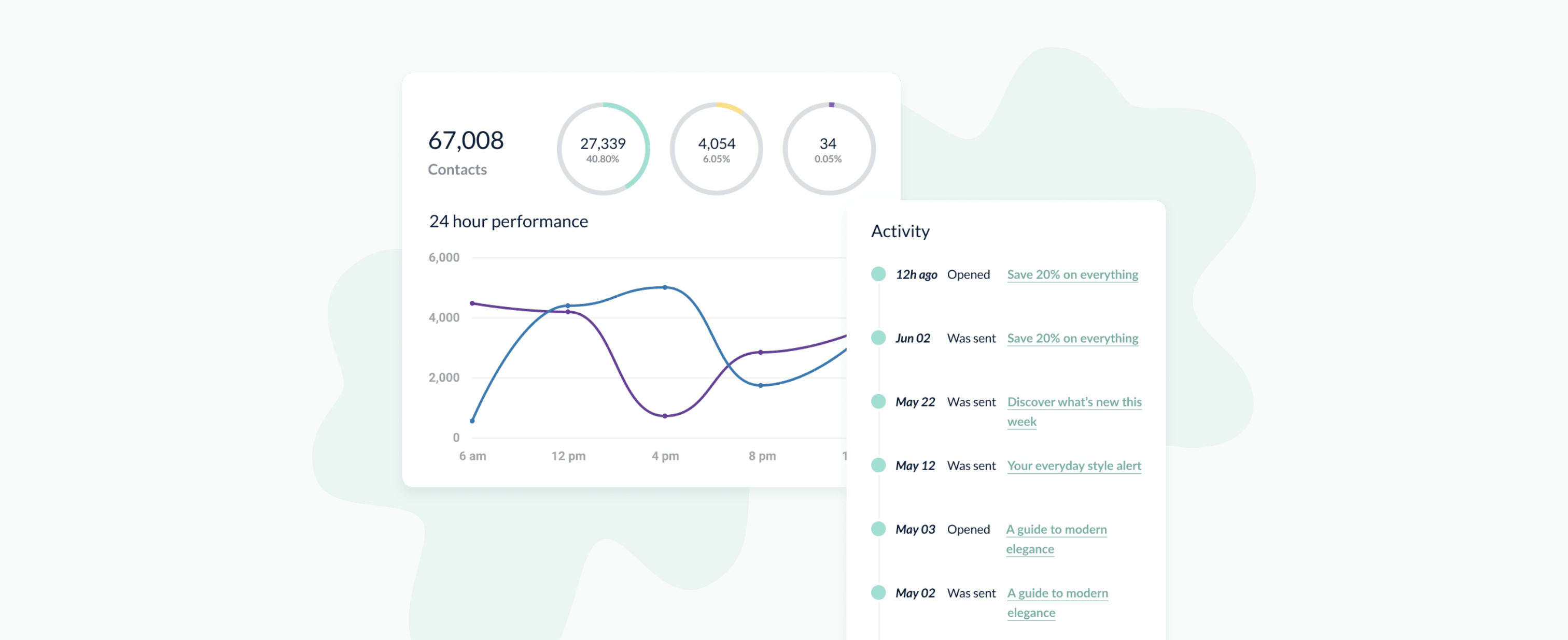 • Open rate: If there’s a drop, experiment with subject lines or test different send times using A/B testing to determine when your audience is most active.