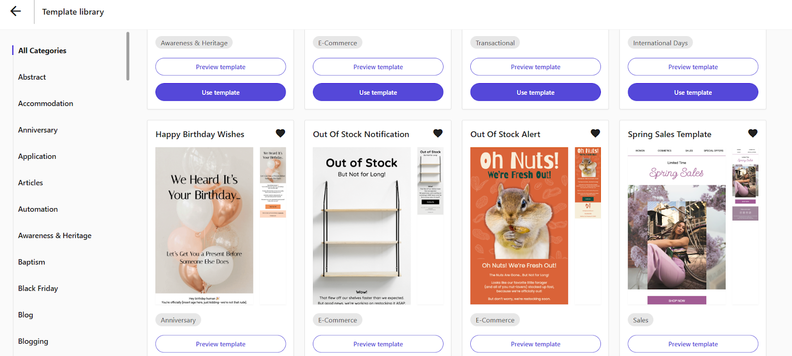 - A huge variety of email templates