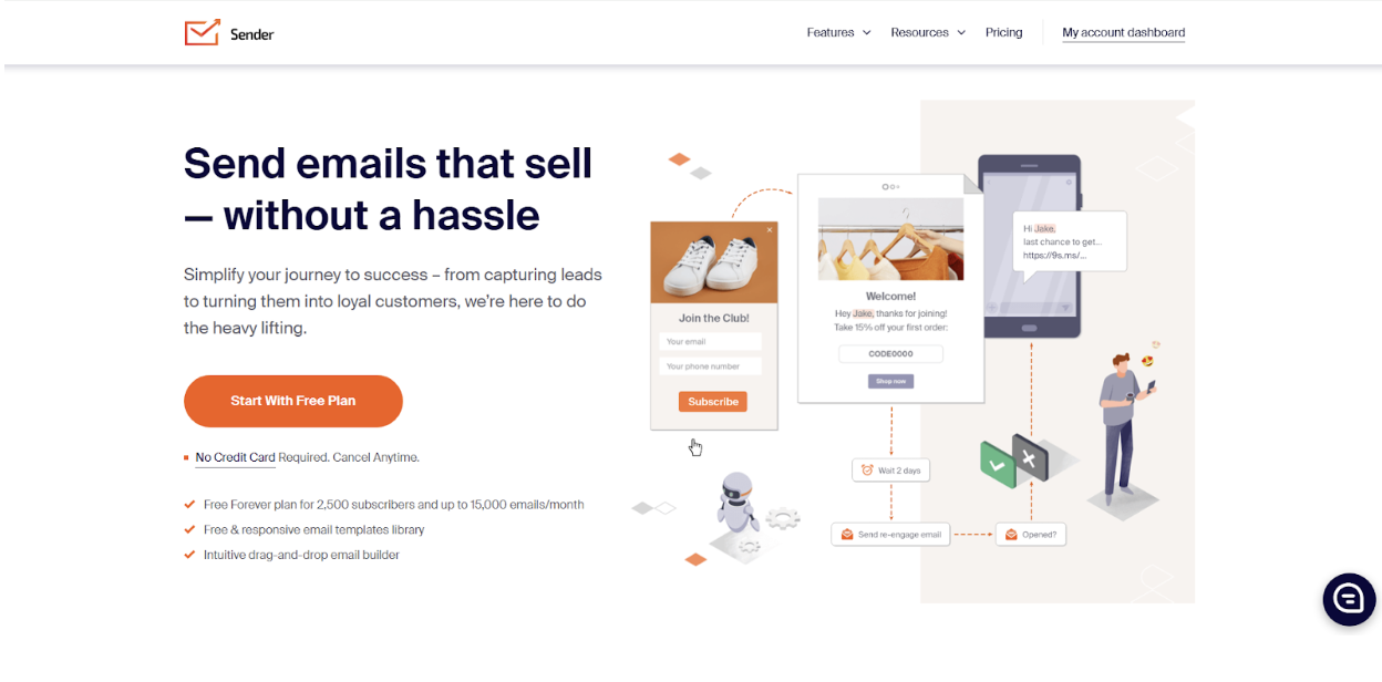 - Sender is a great choice for those looking to combine email and SMS channels to maximize engagement.